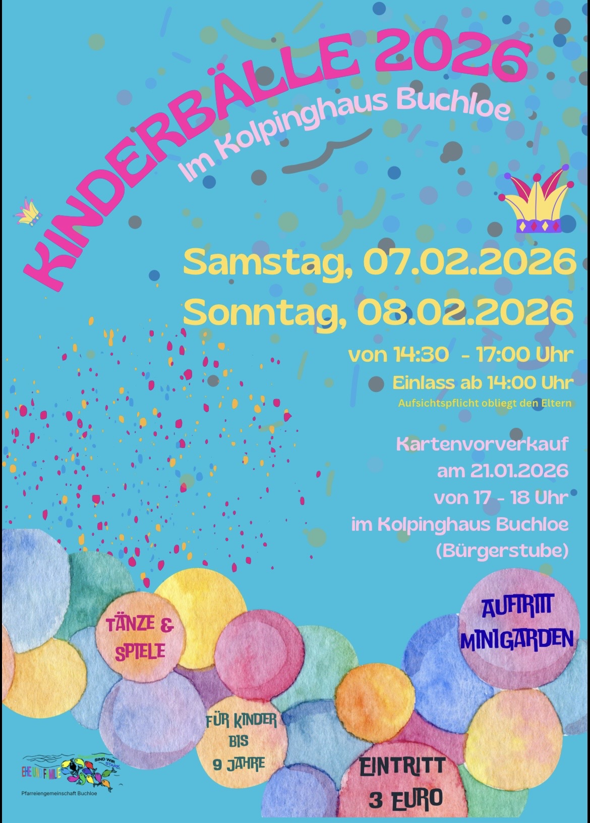 Am 21.1.2026 könnt Ihr zwischen 17-18 Uhr im Kolpinghaus (Bürgerstube) Eintrittskarten für unsere diesjährigen Faschingsbälle bekommen: